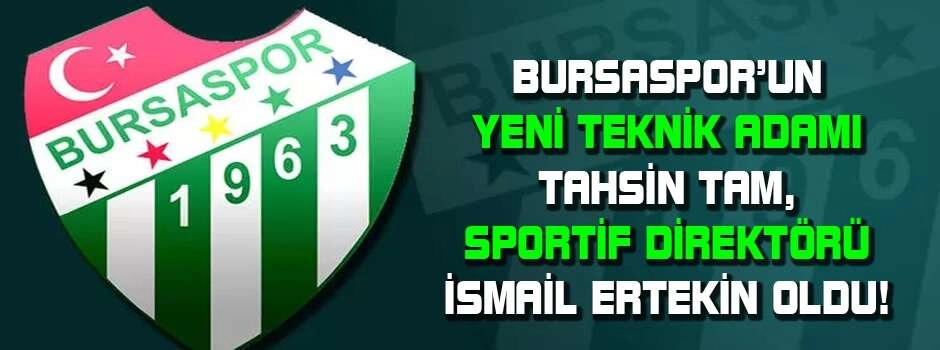 Yeşil-beyazlı takımın yeni teknik direktörü Tahsin Tam olurken, Sportif Direktörlük görevine İsmail Ertekin getirildi. Bursaspor'da yepyeni bir dönem başladı. Yeşil-beyazlı takımda Sportif Direktörlüğe İsmail Ertekin'i getirdi. Bursaspor'un yeni hocası ise Tahsin Tam oldu. Bursaspor Başkanı Ömer Furkan Banaz, her iki isimle de anlaştıkları için mutlu olduklarını söyledi. Bursaspor'dan yapılan açıklama şu şekilde: "Kulübümüz; Sportif Direktörlük görevi için İsmail Ertekin, Teknik Direktörlük görevi için ise Tahsin Tam ile anlaşmaya varmıştır. İsmail Ertekin ve Tahsin Tam'a kulübümüze hoş geldin diyor; yeni görevlerinde başarılar diliyoruz.”