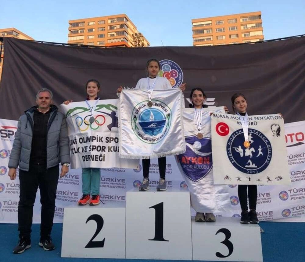 Türkiye Modern Pentatlon Federasyonu tarafından 24-26 Mart tarihleri arasında Ankara Eryaman Olimpiyat Hazırlık Merkezi’nde düzenlenen Türkiye Şampiyonası ve Ulusal Sıralama Yarışlarına Gemlik Belediyespor yedi sporcuyla katıldı. U11 kızlar kategorisinde yarışan Serra Akyapak; yüzme, koşu ve lazer run kategorilerinde topladığı bin 276 puanla birinci olurken yine U13 kızlar kategorisinde yarışan Elif Duman topladığı bin 176 puanla ikinci oldu. Ankara’da düzenlenen yarışları değerlendiren Gemlik Belediyespor Modern Pentlatlon antrenörü Hakan Sarıgül, iki kategoride derece alarak Gemlik’e madalyalarla dönmek gurur verici olduğunu belirtirken, 5 - 6 Mayıs’ta tekrar Ankara’da düzenlenecek yarışlara çok sıkı çalışarak milli takıma daha fazla oyuncu göndermek için çaba sarf edeceklerini ifade etti. Gemlik Belediyespor Başkanı Durmuş Uslu ise, “Sporcularımız her gittikleri müsabakadan Gemlik’e başarıyla dönüyor. Modern Pentatlon çok sayıdaki spor dalını içerisinde barındıran bir organizasyon bütünüdür. Böylesine zor bir sporda ilçemize başarıyla dönen modern pentatlon takımımızı tebrik ediyorum. Önümüzdeki Mayıs ayında Ankara’da düzenlenecek yarışlara daha sıkı hazırlanacağız ve daha fazla oyuncumuzu milli takıma göndermek için çalışacağız. Bizlere desteğini esirgemeyen Belediye Başkanımız Mehmet Uğur Sertaslan’a teşekkür ederim” dedi.