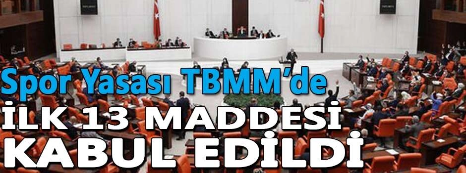 Türkiye Büyük Millet Meclisi Genel Kurulu'nda, Spor Kulüpleri ve Spor Federasyonları Kanunu Teklifi'nin 13 maddesi onay aldı. Kanun teklifinin görüşmelerinde, bazı maddeler üzerinde muhalefet milletvekillerinin de imzasını taşıyan ortak önergelerle değişikliğe gidildi.