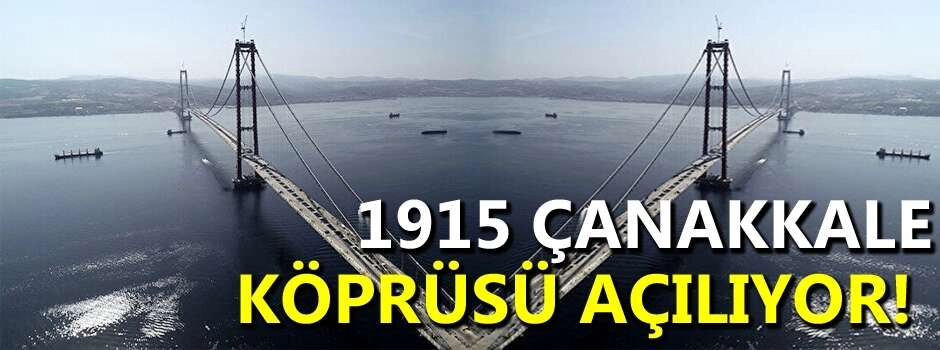 1915 Çanakkale Köprüsü, bugün Cumhurbaşkanı Recep Tayyip Erdoğan'ın katılacağı törenle açılıyor. Temeli 18 Mart 2017’de atılan köprünün açılışından önce bilgiler veren Ulaştırma ve Altyapı Bakanı Adil Karaismailoğlu “Çanakkale Zaferi’nin 107’nci yıldönümünde Türkiye tarihine, dünya tarihine geçecek çok önemli bir açılış var. Çok heyecanlıyız. Hazırlık aşaması 10 yıl süren ve 4 yıl gibi çok kısa bir sürede bitirilen, dünyanın en geniş açıklıklı ve en yüksek çelik ayaklara sahip köprüsünü saat 16.00 itibarıyla hizmete açacağız. Köprümüz sembollerin köprüsü. 318 metre yüksekliğindeki çelik ayaklar 3’üncü ayın 18’ini simgeliyor. 2023 metrelik orta açıklık ise Cumhuriyetimizin 100’üncü yılını simgeliyor. Seyit Onbaşı’nın 16 metrelik simge top mermileriyle birlikte kule yükseklikleri 334 metreye kadar çıkacak” şeklinde konuştu.
