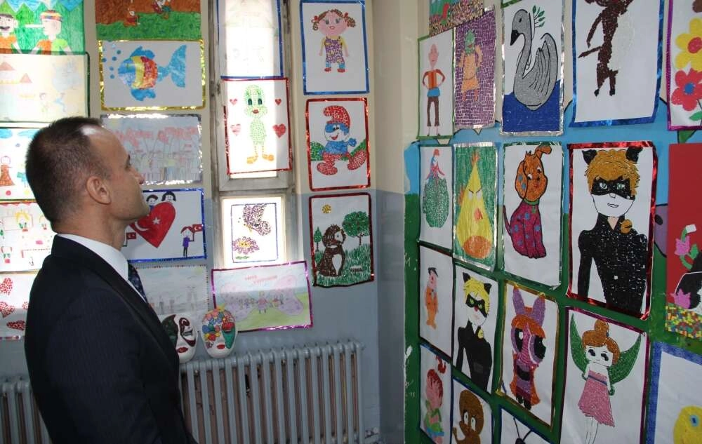 Ağrı İMKB Gazi Ortaokulu öğrencileri, eğitim yılı içerisinde yaptıkları resim çalışmalarını sergiledi.