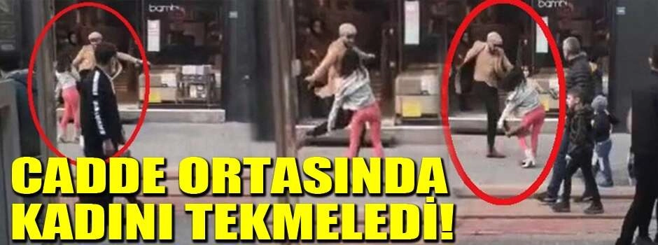 Bursa'nın Osmangazi ilçesi, Cumhuriyet Caddesi'nde tartıştığı kadını tekmeleyen bir erkeğin görüntüleri, cep telefonu kamerasına yansıdı.