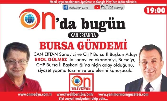 Sanayici ve CHP Bursa İl Başkan Adayı Erol Gülmez , On Tv’de Can Ertan’ın Konuğu Oluyor… www.onmedya.com.tr