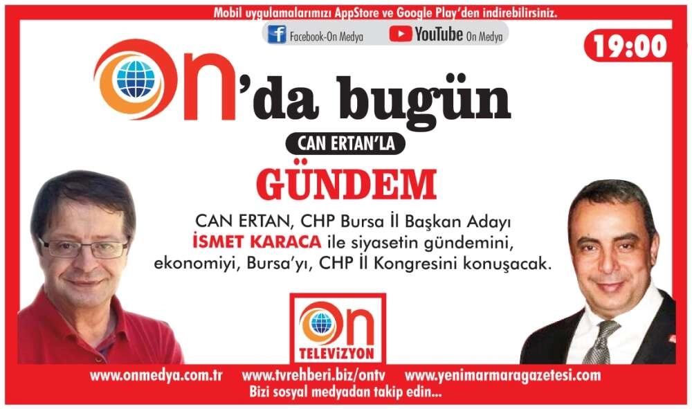 Can Ertan, CHP Bursa İl Başkan Adayı İsmet Karaca ile siyasetin gündemi, ekonomiyi, Bursa'yı , CHP İl Kongresini konuşacak.