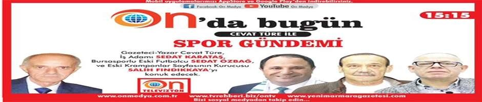 Gazeteci- Yazar CEVAT TÜRE, İş İnsanı Sedat Karataş, Bursasporlu eski futbolcu Sedat Özbağ ve Eski Kramponlar'ın Kurucusu Salih Fındıkkaya, On TV'de Cevat Türe'nin konuğu oluyor...