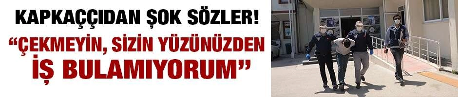 ''Çekmeyin sizin yüzünüzden iş bulamıyorum'' dedi. E.A. çıkarıldığı mahkemece tutuklandı. Kapkaç olayına yardım eden motosiklet sürücüsü H.A.’yı yakalama çalışmaları ise sürüyor. (DHA)