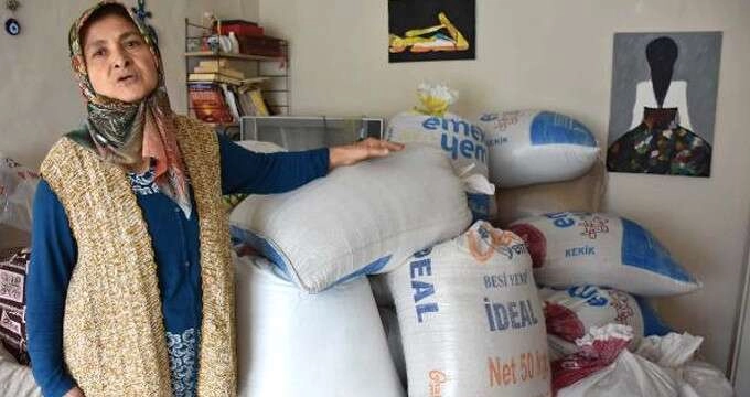 Balıkesir'in Sındırgı ilçesinde çiftçilik yapan Zeliha Şoför (55), 15 dönümlük arazisine 10 bin TL banka kredisi çekerek, 'astronot yiyeceği' olarak da bilinen kinoa ekti. 2 tona yakın hasat yaptığı kinoaya alıcı çıkmadı. Ürünü bozulmaması için oturma odasında muhafaza eden Zeliha Şoför, "Kinoa tohumu satarak ürünlerini alan bir dernekle iletime geçtim. Kilosu 150 liradan tohumları aldım. 15 dönüm tarlama ektim. Türkiye Kinoa Yetiştiriciliği Derneği, 'Önceliği size tanıyacağız' dedi. Ama bekliyoruz gelmediler, mağduruz" dedi.