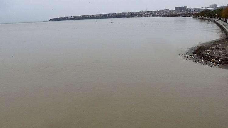 Silivri'de sağanak yağış sonrası denize çamur aktı.