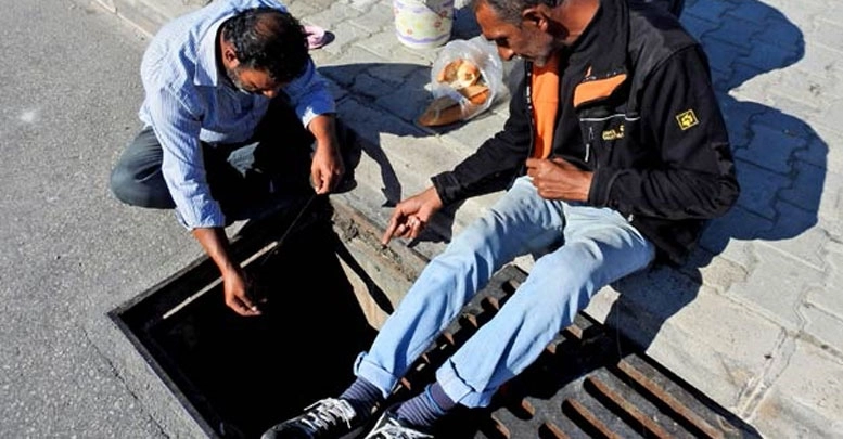 Yağmur sularını kanalizasyon şebekesine çekmek için kullanılan üzeri parmaklıklı demirle kapatılmış ve yollarda bulunan mazgal kapağını açarak balık avlayan amatör balıkçılar görenleri hayrete düşürüyor.
