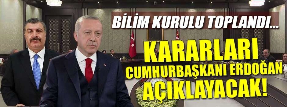 Son dakika gelen habere göre Bilim Kurulu toplantısında alınacak kararları, Cumhurbaşkanı Recep Tayyip Erdoğan'ın duyuracağı belirtildi.