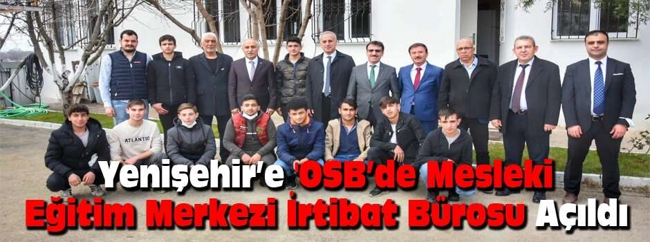 Yenişehir Organize Sanayi Bölgesi bünyesinde oluşturulan Mesleki Eğitim Merkezi İrtibat Bürosunun açılışında Yenişehir İlçe Kaymakamı Rahmi Köse, Yenişehir Belediye Başkanı ve Yenişehir Organize Sanayi Bölgesi Yönetim Kurulu Başkanı Davut Aydın, Yenişehir İlçe Milli Eğitim Müdürü Musa Ayaz ve eğitimlerden yararlanan öğrenciler katılım sağladı. Öte yandan Mesleki Eğitim Merkezi Programları ile mesleki ve akademik hedeflerine ulaşırken bir şekilde örgün eğitim dışı kalmış veya sonradan meslek edinip yeterliliklerini belgeleyememiş kişiler için ustalık, kalfalık ve çıraklık eğitimleri verilerek istihdam ve iş hayatına yönelik çözümlerin üretilmesi amaçlandığı bildirildi.