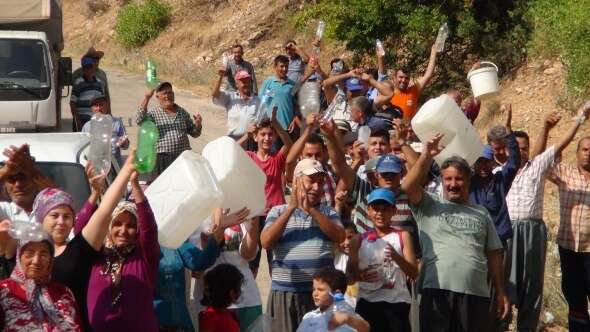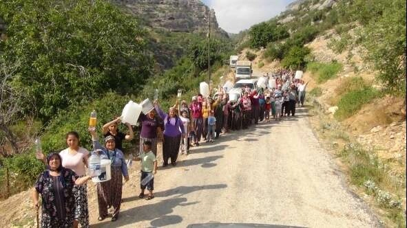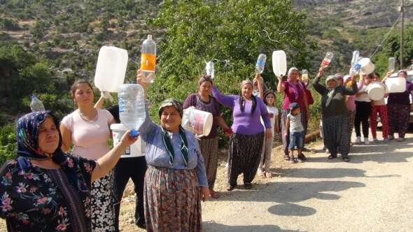 Ayten Çulha ise, “Mağdur olan kadınlardır. Çamaşır makinemizi, bulaşık makinemizi çalıştıramıyoruz. 3 kilometre öteden suya geliyoruz. Suyumuz yetersiz biz suyumuzu geri istiyoruz. 1 litre su için kuyruğa giriyoruz suyumuzu geri istiyoruz” diye konuştu.
