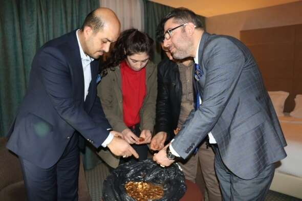 Tarihi altın paralar, polis tarafından otel yönetimi ve işçilerden tutanakla teslim alınarak ilgili birime götürüldü.
