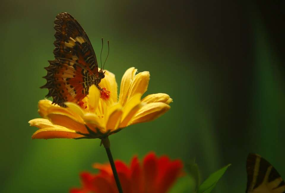 Çocukların kelebeklerin arasında özgürce dolaşabildiği açık uçuş alanları ve kelebeklerin hayatlarını sürdürebilmeleri için onlarca tropikal bitki türünün bulunduğu kelebek serası, ziyaretçilerde hayranlık uyandırıyor.