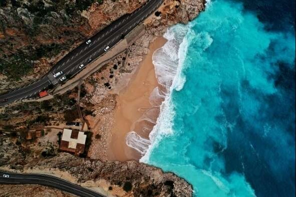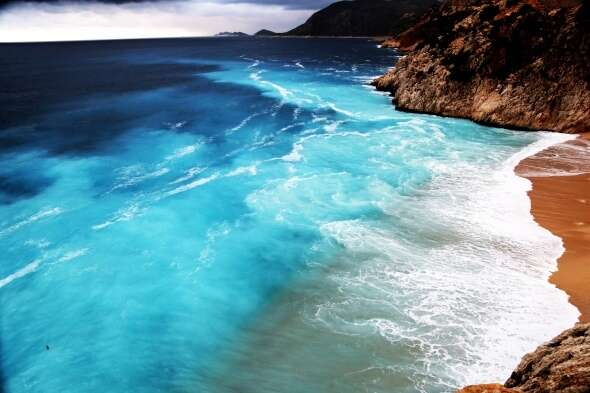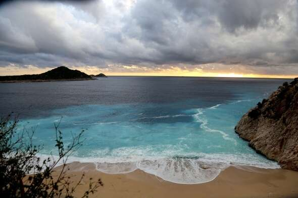 Antalya'nın Kaş ilçesinde etkili olan şiddetli yağmurun ardından dünyaca ünlü Kaputaş plajında oluşan mavinin her tonu kendisine hayran bıraktı.