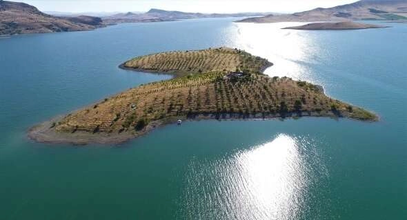 80 yaşındaki Ziya Abay, trafik kazasında eşini kaybettikten sonra döndüğü memleketinde Keban Baraj Gölü Havzası'nda keşfettiği adaya 14 yıl önce kulübe yaparak yerleşip, 3 bin 500 fidan dikerek doğa harikasına çevirdi.