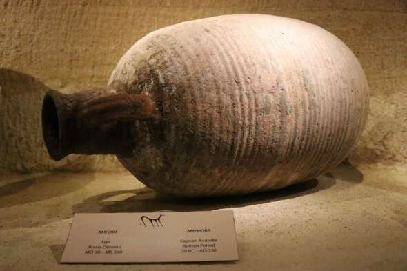 Türkiye'nin önemli turizm merkezlerinden Kapadokya bölgesinde bulunan dünyanın tek yeraltı müzesinde denizin altından çıkartılan ve 2 bin yıllık anforalar yerli ve yabancı turistlerin büyük ilgisini çekiyor.