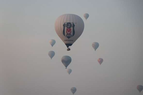 Sabahın ilk ışıklarıyla birlikte havalanan sıcak hava balon turlarına yerli ve yabancı turistler büyük ilgi gösterirken balonların görsel şöleni kendisine hayran bıraktı.