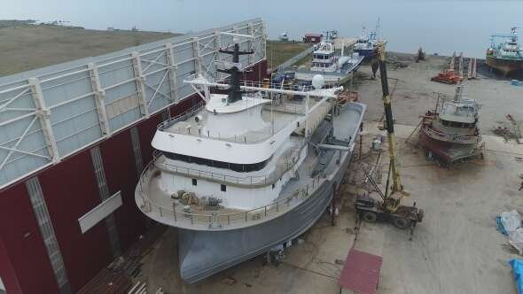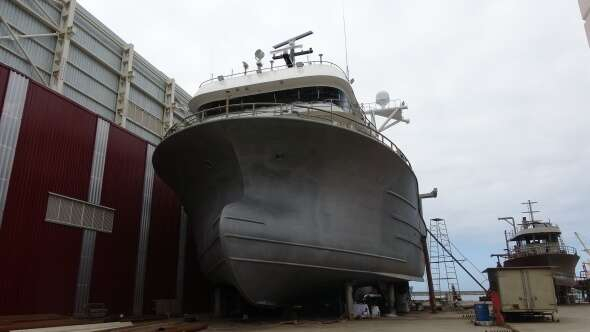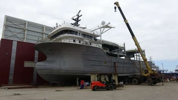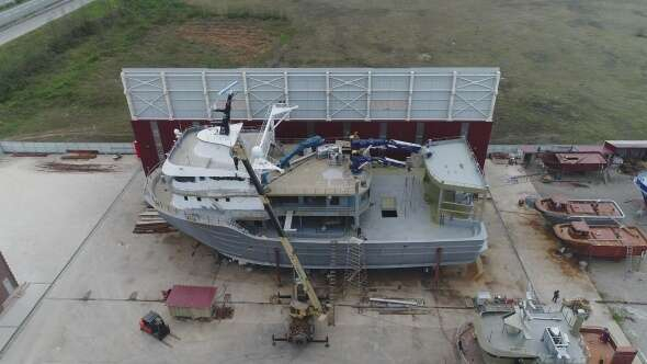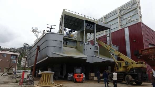 Kabuk olarak inşası bitti ama içerisindeki cihazlar ve donanımlarını beklemekteyiz. Onlar da geldikten sonra yaklaşık 2 ay içerisinde suya indireceğiz. Bu tekne ülkede avcılık için değil tamamen yurtdışında avcılık için yapılmış özel amaçlı bir teknedir.