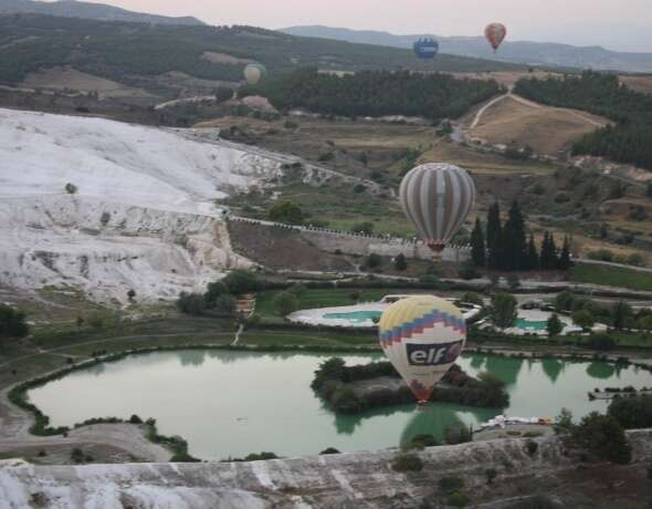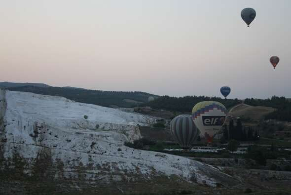 UNESCO Dünya Mirası Listesi`nde yer alan ve ‘beyaz cennet' olarak anılan dünyaca ünlü Denizli Pamukkale'de balon uçuşları devam ediyor.