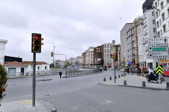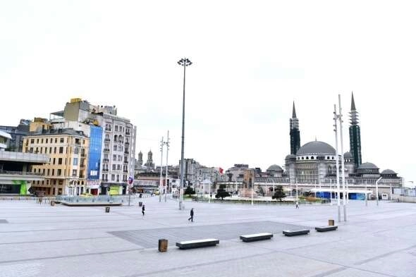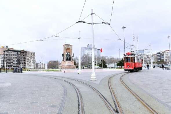 Her gün yerli ve yabancı turisttin akınına uğrayan Taksim Meydanı ve İstiklal Caddesi başta olmak üzere ilçenin en işlek cadde ve sokakları bomboş kaldı. Daha önce yolcuların binebilmek için sıra beklediği nostaljik tramvay da seferlerini yolcusuz devam ettiriyor.