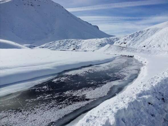 Gök, "Yol açma sırasında fotoğraflar çekiyordum en son yaylada çektiğimiz fotoğraf oradan geçen Yeşilöz Deresi`nin donduğunu gördüm. Buralar yılın her vakti ayrı bir güzel oluyor" dedi.