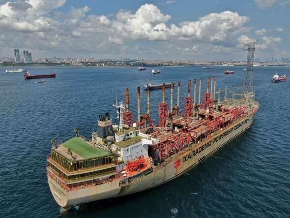 Karadeniz Enerji Grubu tarafından inşa edilen 126 megavat gücünde elektrik üretebilen `Karadeniz Powership Doğan Bey` isimli gemi, Zeytinburnu açıklarında demirledi. Yüzen enerji santrali havadan görüntülendi.