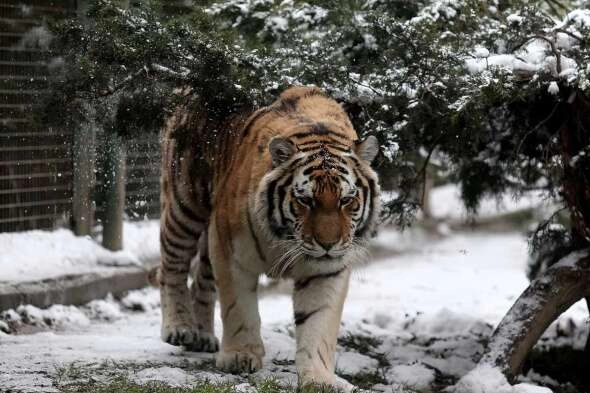 Bursa Hayvanat Bahçesi'nde soğuğu seven hayvanlar karın keyfini çıkarıyor.